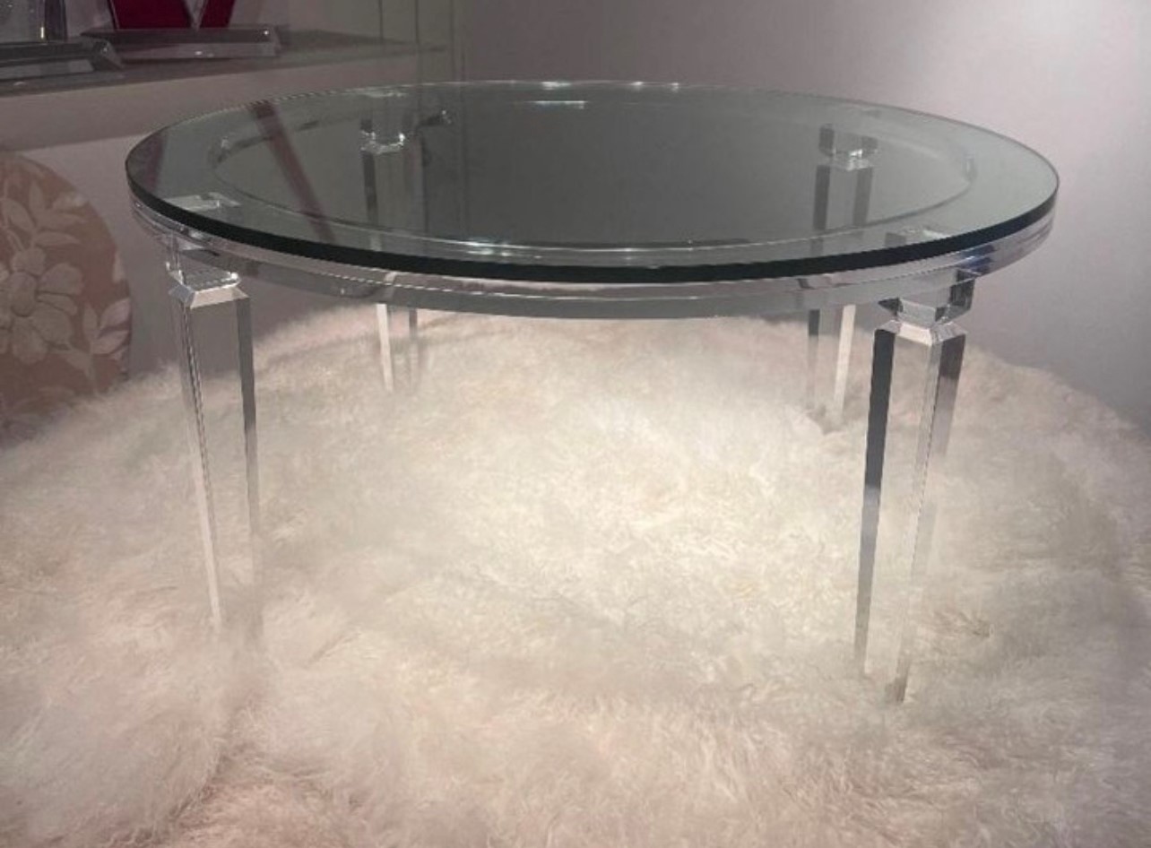 It has a 1/2″ glass top that sits edge to edge of the top of the table base.